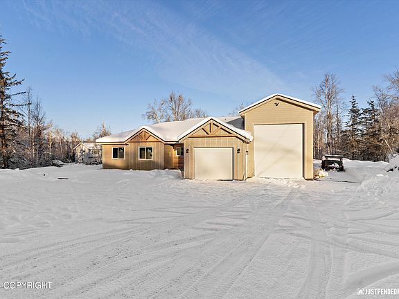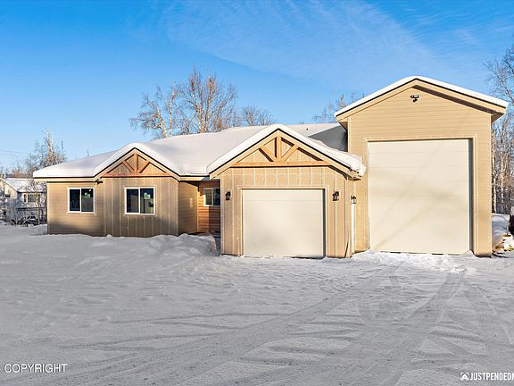 Beautiful new construction home presented by North Ridge Homes boasting 1454 SQFT, 3 Beds, 2 Baths, 1000 sqft garage with RV bay! Rv bay is 42' deep 16' wide with an 14' Ft tall door. You won't miss the beautiful views of Hatcher Pass! Some extras include covered front deck, covered back deck, quartz throughout, subway tile backsplash in kitchen, large kitchen island, matte blackunder mount sink stainless steel appliances, large pantry, laundry room, electric fireplace, lots of storage, LVP in common areas and a large soaker tub surround in master with double vanity. Come see this one yourself! Photos similar