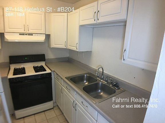SCHEDULE A SHOWING ONLINE AT: showmojo.com/lh/802af74097 Kahe Kai - located in the Heart of Nanakuli Address: 87-118 Helelua St #B-204 Nice clean move in ready unit. Spacious 2 bedroom 1 Bath with 1 reserved parking stall. Utilities included: Water, Hot water and Gas. *Refrigerator *Range/Oven-Gas 2nd floor unit. Tile flooring in kitchen, bath, & both bedrooms. New Carpet in living room & hallway. Mirror Closet doors and Glass Shower doors. Community Laundry room on site. Walking distance to the Beach. Close to Grocery Store, Busline, and Park. Just minutes away from Ko Olina and Kapolei. No pets Non-smoking. For Showings Please call Fahrni Realty at 808-486-4166. Fahrni Realty, Inc. 98-277 Kamehameha Hwy. Aiea, HI 96701 RB#7761 APPLY ONLINE AT www.fahrnirealtyhawaii.com