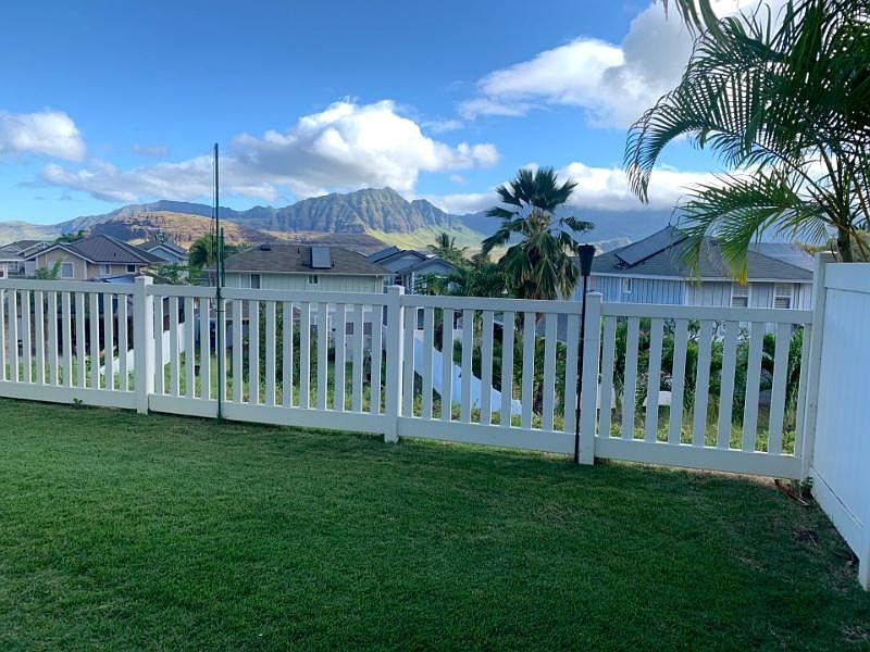 Property Id: 276417 4 BR, 2.5 Bath, attached two car garage, solar water heater, water and sewage included, yard service included, dishwasher, central AC, serene mountain views, peak-a-boo ocean view from master, walk-in closet and private jacuzzi tub bathroom within master bedroom, community pool and recreation center available, walking distance from neighborhood general store, minutes away from white sand beaches, 10 minutes away from Ko'olina Resort, 15 minutes away from Kapolei (Costco, Target, Safeway and numerous restaurants), 20 minutes away from Ka Makana Alii Shopping Center, 35 minutes to Schofield Barracks, 30 minutes from Joint Base Pearl Harbor Hickam, 45 minutes from Kaneohe Marine Corps Base Hawaii.