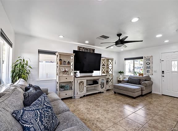 If you are looking for a quality of life near a beach, this is the property you do not want to miss out on. The property is very nicely upgraded and turn key condition. Upgrades worth well over $100,000 were done which includes photovoltaic (leased) full kitchen renovation, all tile floors throughout, newer A/C condenser, tankless hot water heater and more. Perfect for entertainment with the low maintenance yard. You can enjoy your weekend at Maili Beach or the community pool right around the corner from the property. Property is in a corporate relocation program, please contact listing agent for the offer guidelines. SOLD AS IS.