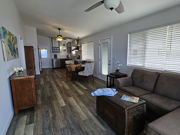 This beautiful 2-bedroom, South Kona home is located in the serene Kona Paradise neighborhood. With sweeping views of the Pacific Ocean and access the beautiful Pebble Beach, Kona Paradise appeals to those interested in a more relaxed, and quiet lifestyle off the beaten path. The home has no stairs between parking and entry.