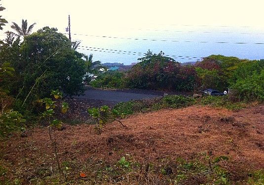 Gorgeous lot with To-Live-For views is conveniently located near the TOP of Kona Paradise, just past Carissa St. You get all the pros: less wear on the brakes, mild and comfortable temperatures with green, lush vegetation and truly amazing coastline and ocean views including the local caldera and King's Trails. County approved house plans featuring 3 bedrooms, 2.5 baths, vaulted ceilings, climate controlled storage, 2 car garage, and lanai are included for the buyer. Build now or buy as an investment. You will also enjoy Kona Paradise for the community park and Pebble Beach.