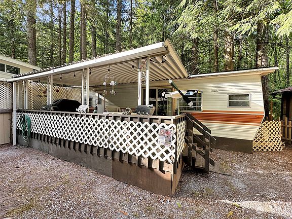 This cute 1980s trailer is a rustic haven. Located on a tranquil dead-end street and backing up to the forest, you will enjoy privacy and serenity in your very own Happy Place. Plenty of outdoor space for your campfires or even adding a gazebo. Features include a covered deck for year-round enjoyment and a shed for storage or workshop space. Inside, the cozy living area is a step back in time, w/ a quaint vintage feel. Clean and well-kept with a nice layout, this is a great starter property in an excellent location near the "end of the Glen." Just 15 minutes from the base of Mt Baker, amenities include pools, hot tub, sauna, tennis & basketball, 24/7 security & more! Occupancy limited to 120/days per year. No rentals.