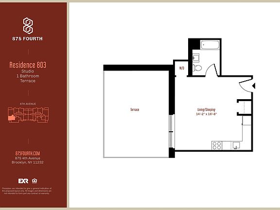 *Stunning apartment, in a brand new luxury, amenity-filled building in Greenwood Heights!* Studio with Large Terrace - Luxurious kitchen with stainless steel appliances, including dishwasher - Floor-to-ceiling double-pane windows, providing lots of natural light - Beautifully tiled bathroom with deep soaking tub - In-unit washer-dryer - Central AC/heat - Hardwood flooring throughout This luxury elevator building has lots of amenities, including: - Doorman - Fully equipped gym - Communal lounge and and co-working space - Outdoor courtyard - Furnished rooftop deck with magnificent views - Parking garage and bike storage - Package room - Children's playroom Conveniently located in the heart of Greenwood Heights , just steps away from Industry City, and near lots of restaurants, bars, and plenty of grocery shopping. Easy access to the D, N, Q, R, and W trains just a ten minute express ride to Atlantic Avenue-Barclays Center! This apartment will not be available for long. For more information on this unit get in touch immediately! - Pets allowed - No broker fee - Open House by appointment only! (photos may be of similar unit in the building) In convergence with South Slope, Industry city and the scenic water front of Sunset Park in Brooklyn, a building of quiet architectural prominence will forever change the landscape of the neighborhood. The eight-story red brick building located on 875 4th Avenue is the newest luxury rental apartment in its scope and design to benefit the community. The unique design of red cladding bricks, large columns of projecting bay windows, private outdoor terraces and the dentil trim of brickwork on the outside of the building is a perfect mixture of classic charm and modern sophistication. It is a milestone that signifies the beginning of the new era of south Brooklyn. It is the first luxury building of its scope in the neighborhood. Developed by Heritage Equity Partners and designed by Fisher + Makooi Architects/KFA, 875 4th avenue is a rental building with 150 units of studio, one-bedroom, and two-bedroom apartments. Each apartment is equipped with in-unit washer and dryer and private terraces. There is on-site garage, tenant lounge with fireplace and rooftop and sundeck overlooking the river and skyscraper of lower Manhattan.