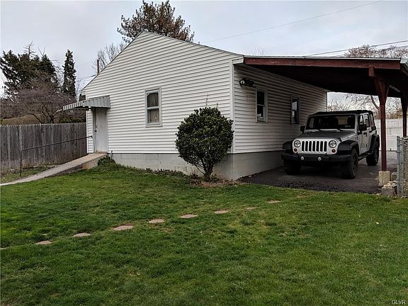 This is a fooler. Redone Cape with 4 bedrooms and 2 full baths. Ultra modern updated kitchen. Refrigerator, washer and dryer included. Living Room and 2 bedrooms with full bath on the first floor. Upstairs 2 more bedrooms with large walk in closet off the Master bedroom. Den or office on 2nd floor. Gas Hot air heat and full Central Air. Owner has current Certificate of Occupancy from Whitehall Township. No repairs needed. Oversized detached 2 car garage with carport. Covered Patio and fenced in yard with fenced in garden area. Close to all interstates in the Valley. Route 22 and 78 and Pa turnpike minutes away. All homebuyers should take a look. Radon Remediation system has been installed. FHA approved at $180,000.