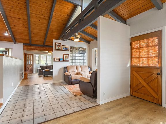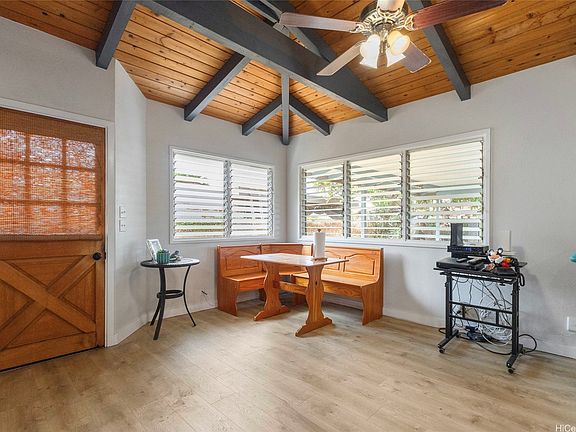 Discover this exceptional four-bedroom, three bathroom home on a quiet dead-end street in Maili. Recently refurbished, this 1,832 sqft residence features durable construction and an open concept living space. Exposed beam ceilings create a sense of spaciousness and architectural charm. The primary bedroom offers a private retreat, while three additional bedrooms provide flexibility for family and guests. There's also a dedicated office area for remote work or creative pursuits. The back patio is perfect for morning coffee or sunset relaxation, with gentle trade winds keeping things comfortable year-round. You're minutes from Maili Point Beach Park where ocean adventures await. Move in and enjoy island living right away! Quality construction, recent renovations and a welcoming atmosphere are waiting. This is more than a house; It is a place where memories are made.