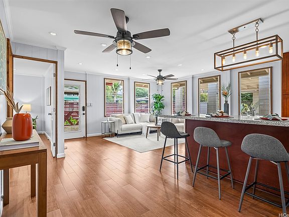 Welcome to this charming 3-bedroom, 1-bath home with attached 420sqft guest suite (studio/1bath) in the heart of Ma'ili, where island living meets everyday comfort. Thoughtfully maintained with many upgrades, this residence features an open and airy layout filled with natural light and split system A/C throughout the home. Step outside to a fully fenced property with automatic rolling gate to enter a spacious covered carport with enough space to park 4 pick-up trucks. The large lawn and yard is perfect for entertaining, gardening, and relaxing. Behind the main home lies a versatile 400 sq. ft. detached flex space with air conditioning, ideal for a home gym, and office. Recent improvements include AC, photovoltaic panels (2020), and a carport & storage built in 2022. Conveniently located 2 blocks from Nani Kai Beach Park, and the Pu'u O Hulu hiking trail, this home offers both adventure and tranquility. Make this peaceful island retreat on Oahu’s Leeward Coast your next home.
