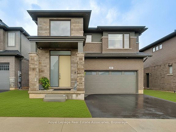 Built in 2024 by Mountainview Homes, this impressive 4-bedroom, 4-bathroom brick and stone residence showcases more than 3,000 sq. ft. of beautifully designed living space enhanced with premium upgrades throughout. The main level boasts an inviting open-concept layout anchored by a striking electric fireplace feature wall in the great room. Wide 9 luxury vinyl plank flooring extends across the main floor, upstairs hallway, and family room. The contemporary kitchen stands out with quartz countertops, a white backsplash, and an oversized island, perfect for gatherings large or small. A private side entrance adds flexibility. Upstairs, the versatile family room offers space for relaxation or a home office. The thoughtful bedroom configuration includes a primary suite with walk-in closet and spa-inspired ensuite, a second bedroom with its own ensuite, and a Jack & Jill bath shared between the remaining bedrooms. A convenient second level laundry room completes this floor. The lower level presents over 1,350 sq. ft. of untapped potential, complete with larger windows and a bathroom rough-in, ready to be finished to your vision. Nestled in the desirable Fonthill community, this home is just steps from the Meridian Community Centre, scenic trails, shopping, gyms, restaurants, pharmacies, and top-rated schools- blending comfort, convenience, and lifestyle in one outstanding location.