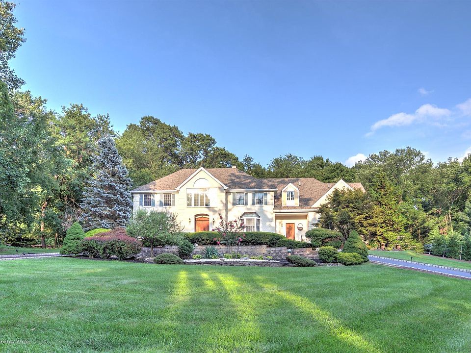 Sitting on top of a hill with circular Belgium Block driveway. Ample room for parking next to your 3 car garage. Timberline Newer Roof. (4 year old) Double front Wood Door and Separate Service Entrance. Two story foyer with curved oak staircase and carpet runner. Balcony with view of nature filled front yard for relaxing and reading a book. Very Bright Living room with gleaming hardwood flooring and French doors leading to the Pool. Office/Library has hardwood floors with large bay window letting light in and offering views of the nature and wildlife outside. Sunken Family room offers hardwood flooring with Masonry Wood Burning Fireplace and Cathedral ceilings with Skylights. Kitchen with generous sized Center Island with stools,downdraft oven and ample dinette area. Wall Oven, Stainless Steel Refrigerator and Numerous custom kitchen cabinets. Kitchen with amply sized dinette area and natures view to Slate back patio, pool and wooded wonderland privacy. Balcony area offers seating to watch nature out you front window or read a book with the light of day. Sitting room has hardwood floors and a wood burning fireplace, Bookshelves for reading material and lots of natural light Sitting room with hardwood floors and greenery views out the window showing the birds and nature at its finest Large Master Bedroom with hardwood floors and ceiling fan Offering sitting room with fireplace and hardwood floors and Master Bath has 3 Walk in Closets.Very Spacious Master bath with Jacuzzi tub with whirlpool jets to relax your muscles from a hard day at work. Spa like shower fully tiled from floor to ceiling with seat for relaxing and a frameless shower door seamlessly fit. Large Master Bath vanity with Designer Tile flooring and a Bidet for the Lady. Princess Suite is a must in this home for the Princess of the House including a full bath. Princess Suite is a must in this home for the Princess of the House including a full bath. Jack & Jill bedroom is a also a must in this home for the Prince & Princess of the House including a full bath. Gym area in the basement for keeping fit and working out. Equipment is not included. Shangri la at home with your very own built in pool for swimming and Koi Pond. Also a putting green. Tee time. covered patio for a rainy day.Shangri la at home with your very own built in pool for swimming and Koi Pond. Also a putting green. Tee time.