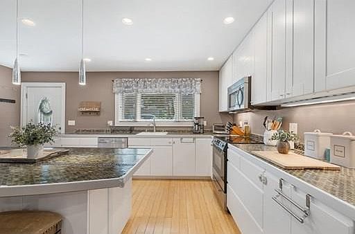 A truly unique space in this oversized condex conversion! Completely remodeled in 2009, three full levels of living with additional storage in the basement and enclosed front porch. Updated kitchen with massive island and additional seating fits today's busy lifestyle. Tons of cabinets and counter space provide ample room to cook and entertain. Large master with attached en suite featuring a jacuzzi tub and separate shower as well as a full walk in closet are sure to impress. Recessed lighting and bamboo hardwood floors, tiled baths, on demand hot water and high velocity AC add to this home's many features. Enjoy summer nights on your patio and pick fresh vegetables from your garden. All major components approx 11 years old. Beautifully maintained, nothing to do but move in! Close to all of your favorite Franklin establishments, as well as Dean College, the commuter rail, and 495! No showings prior to OH 8/1 11-1PM.
