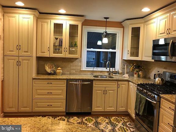 Meticulously maintained home with remodeled kitchen, stainless steel appliances, granite counter tops, window over the sink and pendant light, five burner gas stove, pantry, high hat lights, ceramic back splash and accent wall. Access to garage and the three season room with ceiling fan, new floor, doors to back yard and patio for all your outside entertainment. Dining room features crown molding and built in corner cabinet. Second level features main bedroom with remote controlled ceiling fan, private bath with ceramic tile floor , stall shower and wood cabinet for linens. Next level has three additional bedrooms, hall bath and walk up attic for all your storage needs. Lower level features den with exterior door to side yard. This level also features the laundry room with laundry tub and potty. Hardwood floors throughout except in baths and vinyl in Den and laundry room. Windows, heater and central air were updated prior to seller purchasing property.