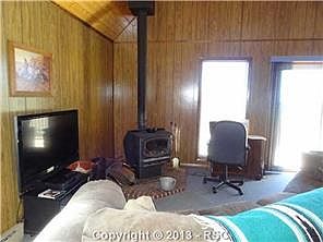 Great westerly views; living room with wood burning stove; walk-out from kitchen to large Trek deck to enjoy the views and wildlife; all kitchen appliances included; main level bedroom and full bath; tongue & groove pine ceilings; upper level loft bedroom and ? bath; walk-out lower level with large family room (now used as a recording studio), bedroom and 3/4 bath; wrap-around deck; treed; privacy; low-maintenance metal roof; natural gas available.