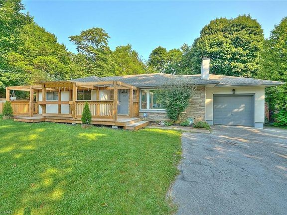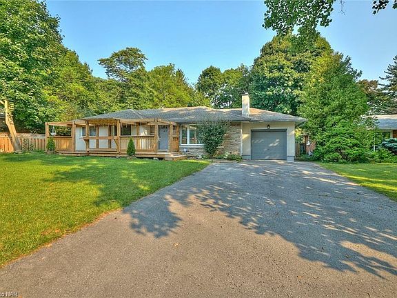 This 1206 sqft three bedroom bungalow sits on a huge 72, x 177' at the top of the hill, in the desirable growing community of Fonthill in Pelham. It is just a short stroll from downtown and all amenities including restaurants, shops, nail salon, Canada post office, library, brewery, Shoppers Drug Mart and more. New exterior front and back decks were just completed in 2023 giving you plenty of outdoor space to enjoy. The stucco on the home was also completed last year, updating the look of the home and adding to the great curb appeal. You will love the private back yard and you can walk to the Farmer's market, music in the park, Shoppers, library, post office, churches or stroll along the Steve Bauer Trail. This home offers main floor living space, a full eat-in kitchen as well as a separate dining room and a large living room with wood fireplace and overlooks the front yard. The bedrooms are spacious and there is plenty of storage space in this home with build-in cupboards in the hallway and a fully unfinished basement with a rough-in for a further bathroom, perfect for future development. The garage is oversized in length with built-in shelves and a bar area at the back with a man door to the back yard. The huge back yard is fully fenced, with a gazebo and tons of deck space for entertaining. Be sure to come and see what this great home has to offer in the heart of Fonthill - close to world class wineries, golf courses, the Niagara Falls Casino and attractions, Niagara College, Brock University and so much more!