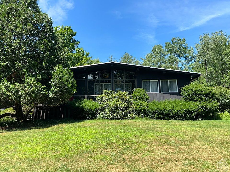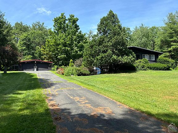 Step into your own world of Zen on this 2.3 acres of utilized space. 2 beds, 2 full baths, spacious living room with fireplace. Open kitchen and dining room. Lots of finished wood cathedral ceilings, tile and hardwood. Quality craftmanship all throughout. Finished basement with pool table, office area, hot tub room, wine and canning pantry. Three season front porch surrounded by glass overlooking the view of serenity. Lots of open space, for animals, gardens and toys. Work on the pool to bring it back to a favorite space for lounging and entertaining in the privacy of your back yard. Comes with a garage, barn, meditation or playhouse building, and a backyard patio. Bring your ideas and with a little work you'll never have to leave. I90, TSP, Berkshires, Albany close by