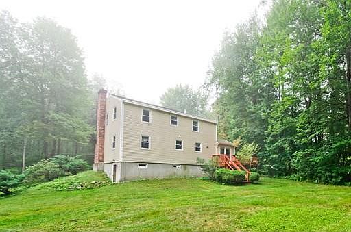Graced by a storybook, serene and wooded 2+ acre lot lays this 3 Bedroom, 1.5 Bath Gambrel. Quaint, move-in-ready and private make this an ideal home for any home buyer. Enjoy two entry points through the side porch with Eat-in Kitchen access or front opening into the Living Room featuring a Brick Fireplace. The side room boasts a large Picture Window, Sliding Glass Door to the backyard with steps down to the large backyard, Pitched Wooden Ceilings accented with a Skylight. Breeze into the Kitchen where you will find a Large Center Island, Pantry and an accentual arched cutout w/ Breakfast Bar offering sights to the formal Dining Room. This first level is complete with a Living Room, Full Bath and Office/Den. Upstairs find a gracious sized Master with a Walk-in Closet, ½ Bath and 2 additional bedrooms.