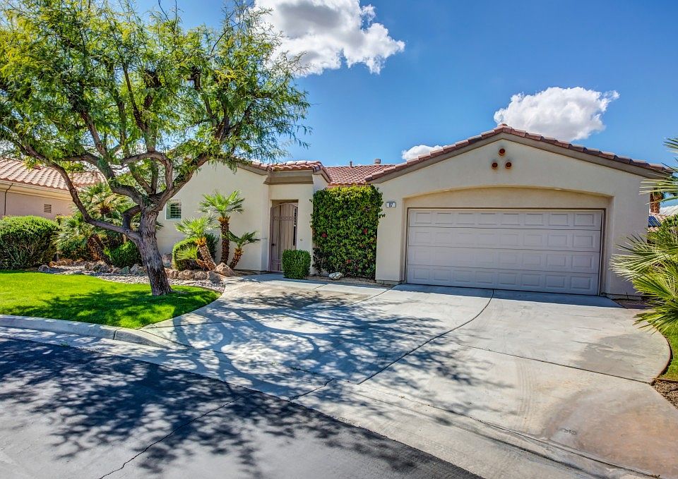 Location, location, location! Desirable Lantana home in Palm Desert. Bright open floor plan with large private yard and patio. Situated on a premium interior cul-de-sac lot. Popular Ocotillo plan offers large open kitchen with prep sink/wet bar, tons of cabinets, walk-in pantry and broom closet. Great room with 12-foot ceilings, huge master suite with large bathroom and walk-in closet. Two bedrooms with a Jack and Jill bath, plus large den or study and powder room.