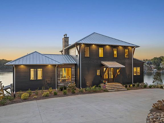 Smith Lake (Ryan Creek) An exceptional custom build in one of the most coveted sections of the lake! You are sitting right on the water with with gorgeous views up the channel. A lovely covered porch allows you to capture the sunsets year round. Kitchen has large island and gas range. Master on main. The lower terrace has a fireplace, tv, and kitchen area. The ideal spot for football games!
