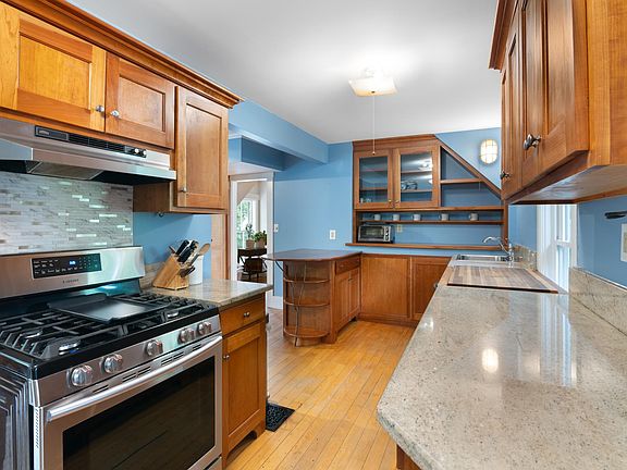 If you're looking for an in-town home that has a feeling of privacy and tranquility, look no further. This charming duplex has been lovingly and tastefully updated and cared for, and will provide steady income, or additional space for friends and family to visit and stay. Outdoors you can enjoy the view and the sounds of the Whetstone Brook from the home's three spacious porches, or stretch out in front of the firepit in the fenced in side yard. The first floor contains a 2 bedroom apartment with a recently renovated kitchen, its own washer/dryer, and a full bath with a low-threshold shower - perfect for aging in place if desired. The entrance to the second floor features a mudroom with lovely built-in cabinets. Upstairs, the updated kitchen features natural stone countertops, stainless appliances, and newer cabinetry. In the open dining/living area you will find natural wood floors, a pellet stove on a local stone hearth for cozy winter nights, and a bonus/office room that opens up onto the spacious second floor porch. Thoughtfully remodeled, there are storage nooks throughout this apartment, including in the primary bedroom, which also features double closets. The third floor attic has been finished and opens up to its own balcony overlooking the brook - the perfect spot to immerse yourself in a good book! There is also a 2-car detached garage for parking, or for puttering away on projects. Showings begin June 8th.