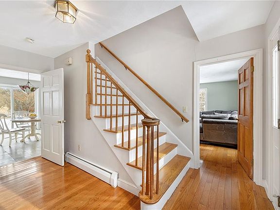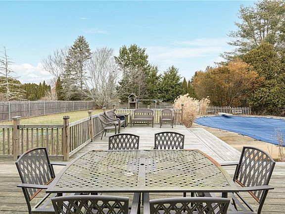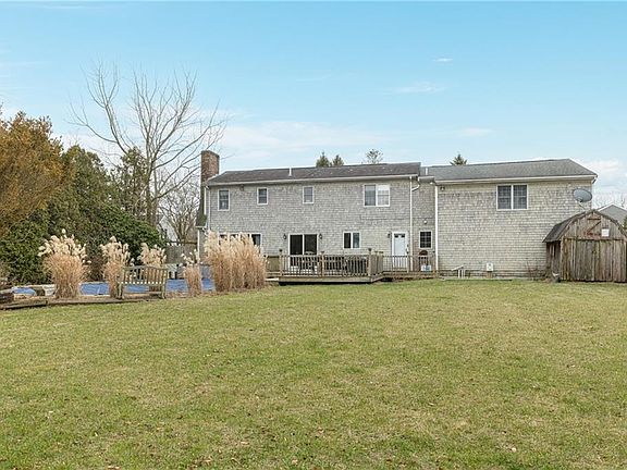 Located in Southern Portsmouth, just off Wapping Road, with local farm stands, vineyards, and beaches nearby, is this four bed, three full bath gambrel colonial. Set at the end of a small cul-de-sac, the property is sited on a half acre of land. The residence offers a traditional floorpan at the entry foyer, then expands to an open-concept living space in the back of the home. Just off the kitchen, are sliding glass doors that open to a private back deck, fenced backyard with in-ground pool. Step upstairs to two guest bedrooms, full bath, primary bedroom with en-suite bath, an oversized bonus room, and private guest bedroom. Plenty of closets, even a cedar closet! The backyard abuts conservation land and the Sakonnet Greenway Trail, a ten mile walking path, great for hiking, dog-walking, even cross country skiing - perfect for the wildlife enthusiast! Recent improvements include a new four bedroom septic system, and new boiler. With a few personal touches and upgrades, the investment will be well worth it! A short drive to downtown Newport and local ocean beaches make this a perfect location for a primary or second home.