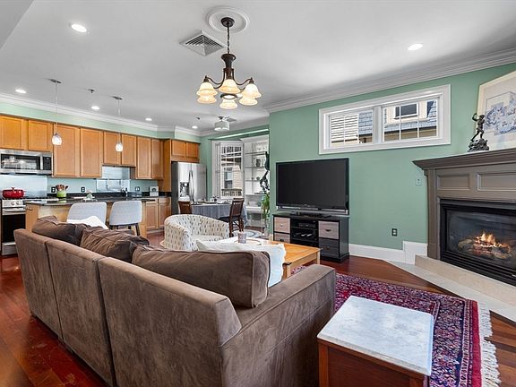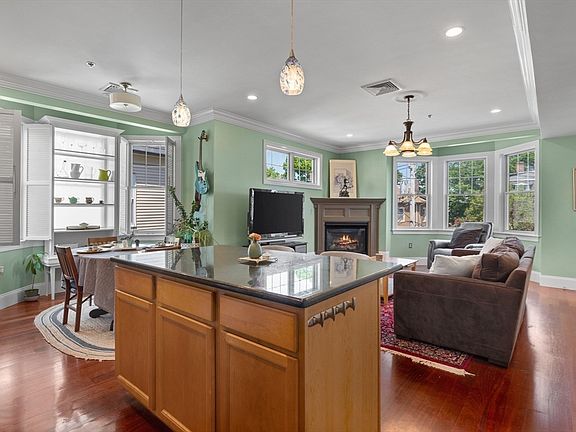 Welcome to your home, an ideal retreat for buyers looking for modern elegance. This exquisite condo boasts an open floor plan with high ceilings accentuated by crown molding, creating a spacious and inviting atmosphere for entertaining and relaxation. Step into a bright, airy living area anchored by a charming gas fireplace, perfect for cozy evenings. The sleek kitchen is a culinary enthusiast's delight with its large island, granite countertops, and stainless steel appliances, offering a seamless flow into the dining and living spaces. Relax in one of the three generously sized bedrooms, including a primary with an en-suite bathroom. Enjoy the convenience of central heating and air conditioning, wood floors throughout, an in-unit washer/dryer, and two parking spaces. Savor moments of tranquility on your private rear deck, or socialize on the common roof deck with stunning views. Convenient to Shawmut T Station and the vibrant local dining scene. This condo is a lifestyle upgrade.