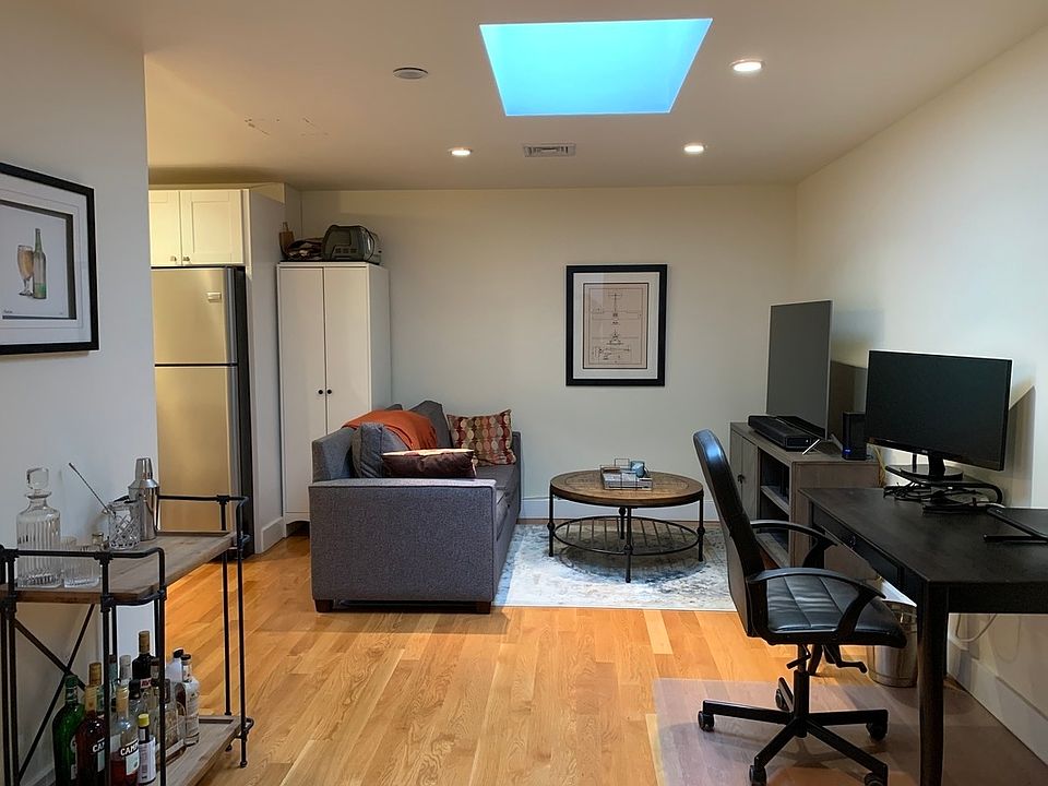 Located on the top floor, ( three flights up) is sunny One bedroom. Hard wood floors, Skylight in living room, Stainless steel appliances and Central Heat and A/C- Located steps from all shops, cafes, and restaurants on Smith Street. Pets are on a case by case basis. Laundry in the basement, as well as additional storage ( 8x10) Centrally located in Carroll Gardens, with Brooklyn's Restaurant row at your door step. Along with bakeries, cafes, cool bars, grocery stores, boutique shops, banks and Carroll Park. Subway trains nearby are F/G/A/C/R. Known for its charm, uniqueness, historic district, beautiful tree-lined and brownstone row-houses residential streets. Walking distance to the surrounding neighborhoods of Cobble Hill, Boerum Hill, Gowanus and Columbia Street Waterfront District. Kindly email for additional information.