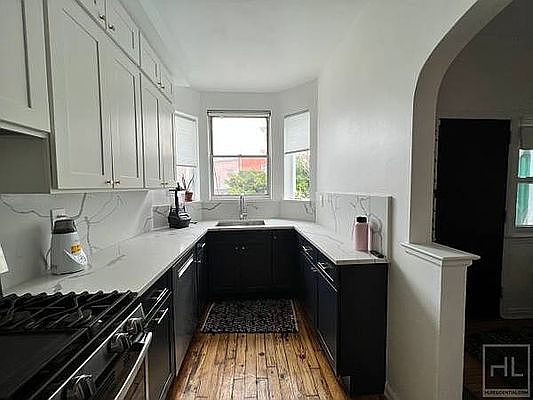 Drive right up into your own parking space in this 2 bedroom, 1.5 bath charming rowhouse in the heart of Flatbush. Completely Renovated from top to bottom a few years ago, the stylish duplex comprises the top two floors of a private house. The house is also FIOS enabled. The windowed kitchen has a dishwasher, Quartz countertops, and all new stainless steel appliances. There is a nook for dining, which leads out to the spacious, sunlit living room. You can access the steel deck overlooking the garden through a door in the back of the house. Arched entryways and built-in cabinets add period charm to the modern renovation. The living room is spacious and is perfect for lounging or hanging out with family. Upstairs are two large bedrooms, a Washer/Dryer, and a completely renovated bathroom with a sliding glass door above the tub. The house is situated on a tree-lined block and accessible to both the 3 and 4 train lines and is just a short distance from SUNY Downstate Medical Center Rent includes heat and hot water 1 month broker fee