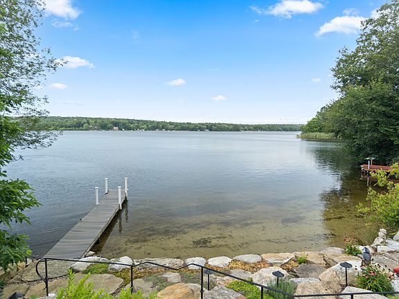Discover lakefront living at its best with this stunning 3 bedroom 2 1/2 bath home that is only 5 years young. This direct waterfront gem with dock on Gardner Lake is a rare find with its professional landscaping. Watch the beautiful sunsets from the covered porch. The open floor plan allows for entertaining guests who will appreciate the fun of lake life and the peacefulness of the views from the covered porch. This home offers a casual feel and gleaming hardwood flooring. It has energy efficient materials such as foam insulation, vinyl siding, on demand hot water, and generator. The outbuilding has 417 sq ft of additional space for storage, workshop or a haven for leisure time. Parking for up to 8 vehicles in the newly paved driveway. This year round home is conveniently located for commuting on major routes.