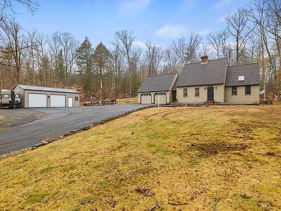 Welcome home to this stunning FOUR bedroom retreat, perfectly set on a private acre! The 1st floor primary suite is its own wing, featuring vaulted ceilings with skylights, a spacious walk-in closet & an updated en-suite bath. The kitchen boasts tile floors, new stainless steel appliances & tastefully painted cabinets, flowing seamlessly w/ a 1st floor 1/2 bath on one side and dining area w/ deck access & a cozy living room w/ a fireplace on the other. Hardwood floors throughout add warmth & charm. Upstairs, you'll find 3 generously sized bedrooms, one w/ access to unfinished space above the garage waiting to be finished, plus another full bath. The finished basement is an entertainer’s dream with a bar, fridge, and plenty of gathering space. A 2-car attached garage PLUS a massive 24x35 detached garage provide endless storage!! Nestled in a quiet neighborhood yet close to town, this home offers the perfect blend of privacy & convenience. Don’t miss out on this exceptional property!