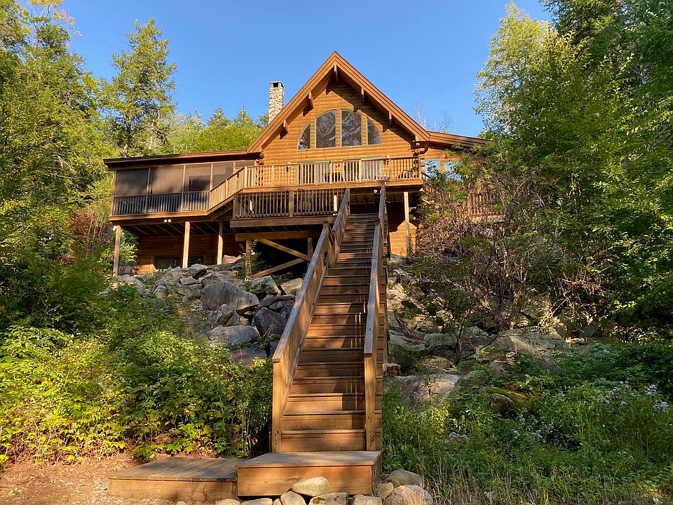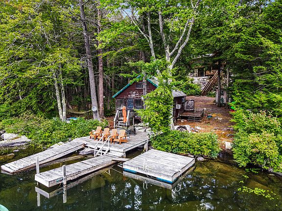 BELGRADE LAKES This property truly offers the best of both worlds - a rustic camp that sits right at the water's edge and a beautifully constructed year-round home spacious enough to accommodate all your friends and family! Privately located on a dead end road nestled next to the Kennebec Highlands Conservation Lands, this property is one of only a few on pristine Watson Pond which has no public access providing for a serene and tranquil setting. The post and beam construction, year-round home was built with gathering and entertaining in mind featuring an open floor plan kitchen/living/dining area with lofty cathedral ceilings, a custom field stone fireplace, direct deck access and large area for dining overlooking the lake and mountains with western exposure for nightly sunsets. Three Bedroom (septic design states 2), bonus room, full bath, laundry room and screen porch are all the main level allowing for one-floor living. On the second floor is a nice loft space with two closets and a full bath with shower. Large game room with daylight walkout access to a second deck area in the basement with a half bath and large garage space perfect for storing your toys. Home also has a two bay heated garage with direct access to the home. The property also includes a classic camp with the best screen porch right on the lake's edge with gentle entry to the lake, large dock area, swim float and storage shed. If you are torn between a year-round home to enjoy the area through all seasons, but also want to feel like you're going back in time in a quintessential camp, you can have your cake and eat it too with this property! Short distance to the Long Pond public boat ramp, numerous hiking trail heads, groomed snowmobile trail system, amenities in Augusta and Waterville and just an hour from skiing at Sugarloaf and Saddleback!
