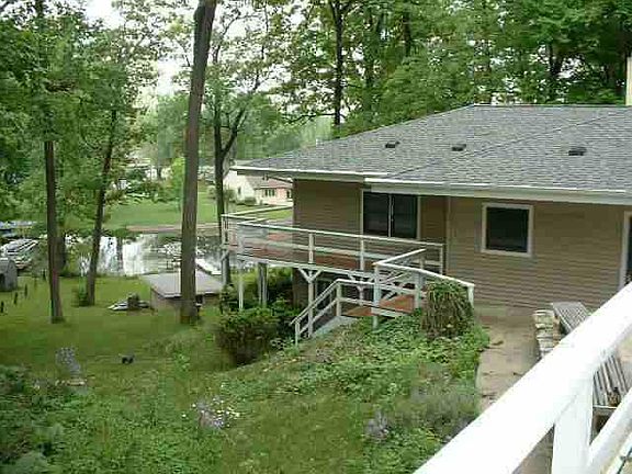 Over 1/2 an acre Channel front home on one of the area's most favorite all sports lakes. This beautiful 3 bedroom, 2 1/2 bath home, with a family room in the walk-out basement is a definite must see. Totally remodeled in 2003, this home features a large dining rm. with fireplace, hardwood floors, porcelain tile, custom kitchen & great view from the wrap around deck. Two large garages for vehicles and lake toys. Private Tippecanoe golf course just minutes away.