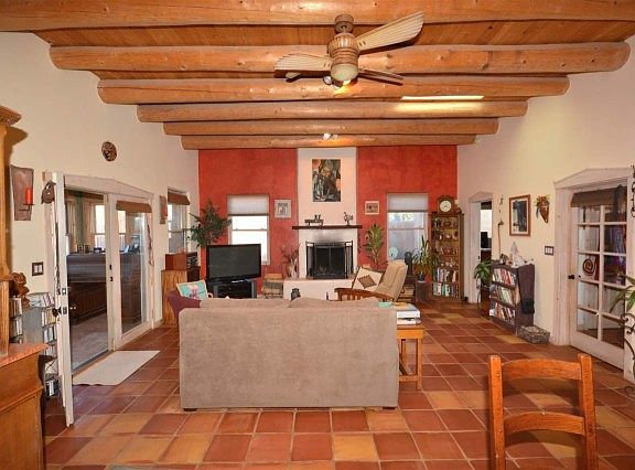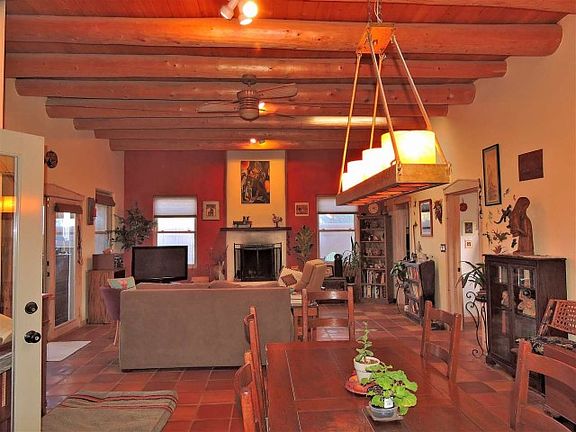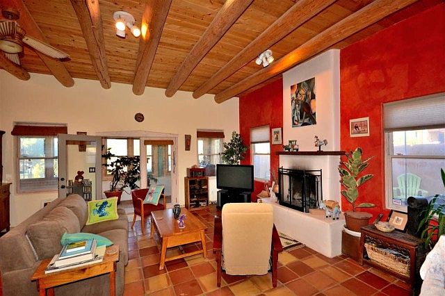 This wonderful, single level home has an open floor plan and lots of Santa Fe style! Located on spacious Encantado Loop, this home features the warmth of Saltillo tile floors, wooden tongue-in-groove ceilings with vigas and a striking Rumsford fireplace. The kitchen has been beautifully remodeled with granite countertops, newer appliances and a kiva fireplace. The house has a split floor plan and lots of upgrades, such as a new white silicone roof, still under warranty and a newer high efficiency boiler. The garage is finished and heated but not included in the square footage. From the living room there are French Doors opening to a large sun room with brick floors running the length of the house. The sun room opens to a large deck with ski basin mountain views. The back yard is fenced to the allowable limit in Eldorado and the mature landscaping is on 3 drip irrigation zones. This home is beautiful and an excellent value!