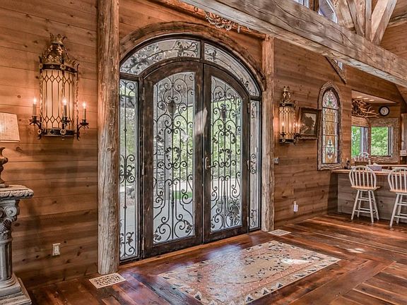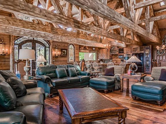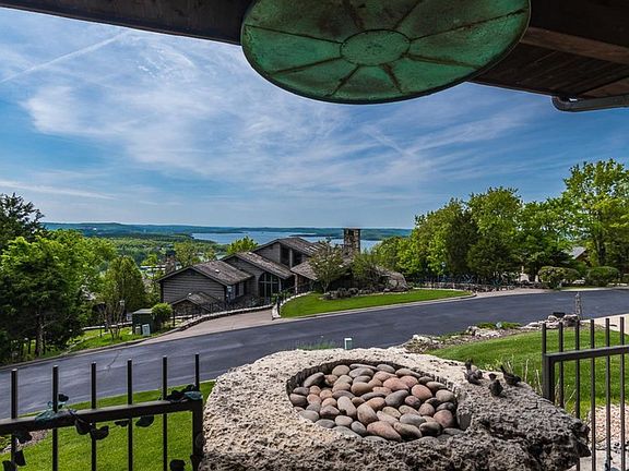 Custom Table Rock Lake Estate on top of the mountain with incredible lake views! Located in gated Sunset Cove, this is truly a masterpiece of design and craftsmanship that you will need to see to believe. Here you will find 3 bedrooms, 4 baths, open living, and a wall of windows showcasing your pristine lake views. Exquisite features include reclaimed wood flooring, stained glass windows, antique doors, bronzed sconces, custom plaster fireplace, antique iron light fixtures, antique mirrors, copper master tub, disappearing flat screen TV in the living room, custom exposed truss beams, antique fireplace mantels, custom antiqued wall with granite and stone, Elk Rosette knobs on custom cabinets, Maitland-Smith screens, custom electronic shades & drapes, cut German Glass Crystal display cabinets, reclaimed antique iron glass front doors, large covered deck with Firepit, covered portico and so much more. A 12 x 24 boat slip is available in the community dock. Call the listing agent today to schedule your private tour of this beautiful home.
