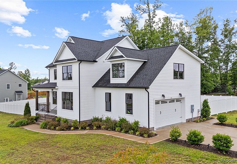 **LIKE New Construction w/so many UPGRADES. Already included in the Pricing!** Step into the award-winning Lancaster model, boasting craftsman-style elegance with its striking black aluminum windows, board and batten siding, and richly stained columns. As you step inside, a grand 2-story foyer welcomes you, adorned with gleaming hardwood floors, lofty 9-foot ceilings, and exquisite crown molding, adding a touch of sophistication to every corner. The open layout seamlessly integrates a spacious family room, inviting breakfast nook, and a chef's dream kitchen, complete with granite countertops, stainless steel appliances, and ample 42-inch upper cabinets. Ascend to the second floor to discover the serene primary bedroom retreat, featuring a generous walk-in closet and a luxurious primary bath boasting a double vanity, elegant ceramic tile, and a sumptuous ceramic shower tub combination with frameless glass enclosure. Step outside to the rear elevation and find a charming 12 x 12 screened porch, offering a tranquil retreat with its Trex decking and vinyl trim, perfect for enjoying the serene surroundings. With the flexibility for a bonus room or a fourth bedroom, this exquisite home truly epitomizes modern luxury and functionality, providing the perfect backdrop for a life well-lived.