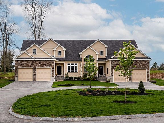 Pristine and well located townhome right on the cul-de-sac at The Villas at Pleasant Valley, with a gorgeous backyard view of the 5th fairway. Open concept plan on the first floor includes a front living rm w/vaulted ceiling and hardwood; half bath with adjacent laundry; gourmet kitchen with oversized island w/breakfast bar, quartz counters, recessed lighting, SS appliances, and slider to rear composite deck; elegant dining room w/wainscoting, and a spacious family room with vaulted ceiling and gas fireplace. First floor primary suite w/2 spacious walk-in closets, upgraded hardwood, large bath w/double vanity and large tiled shower w/glass door. Second floor contains two very generous sized bedrooms: one w/walk-in closet, and the other with a single closet, a double closet, and access to huge unfinished space w/window over the garage (outstanding storage or potential future living space). Gas-fired whole house generator. Fantastic proximity to highways, shopping, entertainment.