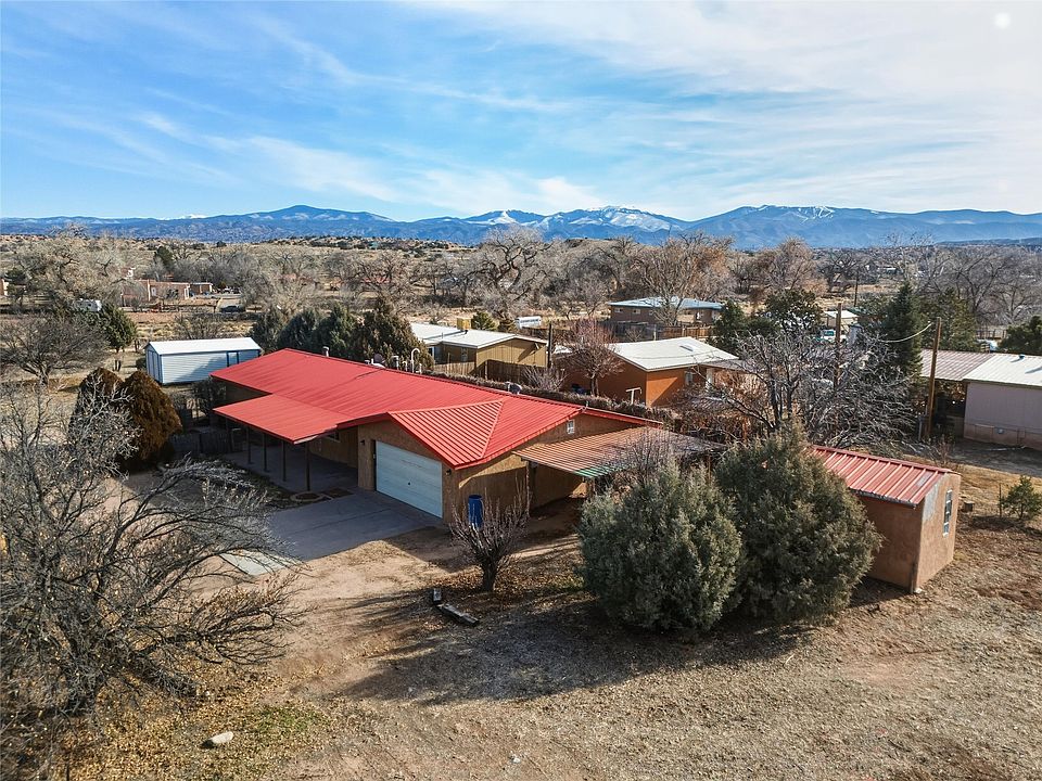 Nestled on over an acre of land with breathtaking mountain views, this updated and well-maintained home offers the perfect blend of modern convenience and rustic charm. From its spacious, light-filled interiors to its serene outdoor setting, this property provides the ideal environment for both relaxation and creativity. With a short commute to Los Alamos and Santa Fe, you can enjoy the peace and privacy of rural living without sacrificing convenience. The heart of the home is the expansive, modern kitchen. Featuring luxurious granite countertops, a large central island with extra storage, and stainless steel appliances, this kitchen is designed for both function and style. Whether you're preparing meals for the family or hosting friends, the layout is perfect for food prep and entertaining, with ample room to gather around the island. A charming wood burning stove located in the kitchen adds warmth and ambiance, creating a cozy focal point for winter mornings and evenings spent cooking and connecting. The kitchen flows seamlessly into the main living areas, offering an open and comfortable layout. The property offers an incredible amount of space for gardening, hobbies, or projects. Mature fruit trees add charm and productivity to the landscape, while the insulated shed provides excellent space for storage or can easily be used as a workshop. The home features an updated bathroom with modern fixtures and stylish finishes, offering both comfort and functionality. This is a rare opportunity to own a well-cared-for home with space to grow, stunning views, and easy access to nearby communities. A perfect balance of comfort, functionality, and location.
