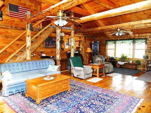 Beautiful Log Home Retreat, 10 yrs young! Open FL Plan with Great Room, 2 BR (Lg FR often used as 3rd BR for company), 2 FBAs, 6 Gar, 50 Acres, 5 Acre Pond Loaded with Bass + Perch, 30 x 40 Barn, Boathouse, 2 Docks, Hunting Cabin (has H + E hook up), Chicken Coop. Hiking Trails, Hunting/Sports, Solar HW + Radiant HT, Stone WPL, 3 WS (wood/prop, 1 in b’ment), Wine Cellar, Fruit Orchard, Raised Bed Veg Gardens. It's all here, nothing to do but move in, you won’t want to leave! Don't miss Virtual Tour.