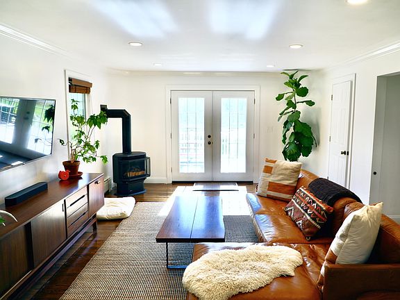 Our lovely Berkshires' home is nestled on the west side of Pittsfield, just minutes from downtown, the Pittsfield State Forest, and Fort Hill Farm. The house was fully renovated in 2021, including a new roof, updated electrical and plumbing, refinished hardwoods, fresh paint inside and out, and a high-efficiency boiler. The kitchen features new appliances, including a chef's range, and ample storage. This leads into a spacious living room with a new, high-efficiency gas stove, french doors that open to the deck, and a half bathroom. The second floor offers three, generously-sized bedrooms with respective closets and inset lighting, including a very large master bedroom with double closets and copious natural light. The full bathroom has been recently renovated with a high-end vanity with lots of storage and a ceramic tub. The unfinished basement offers a washer/dryer and ample space for expanded living/activities. The large back deck is the ideal spot for entertaining as it overlooks a private half-acre yard flanking a gorgeous pond that is frequented by wildlife, including herons, geese, ducks, deer, and a variety of other local guests. The backyard is partially fenced, and the front yard boasts beautiful perennials, including lilies, peonies, lilacs, hydrangeas, forsythia, and hostas. Just behind the driveway is a detached one-car garage that houses lawn tools and can be used for storage. The owner is responsible for water fees with the city. The renter will be responsible for utilities, including gas, electricity, and internet. The rent is due at the first of every month and a security deposit is due at signing.