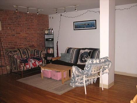 This super cute two bed features hardwood floors, exposed brick, a/c, dishwasher, microwave, balcony, and laundry in unit!