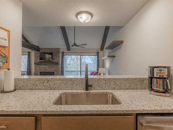 - Dining/Living Room Combo, Open Floorplan, Vaulted Ceiling(s), Breakfast Bar, Eat-in Kitchen, Granite Counters, Solid Surface Countertop(s)