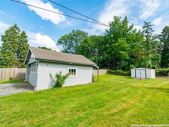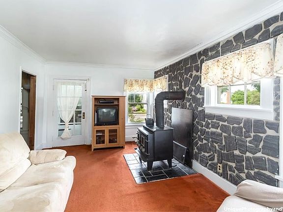 Cute cape with tons of potential in highly desired area. New tear off roof on house 4 years ago * fully fenced yard * some replacement windows * 2 first floor bedrooms plus fabulous master suite potential on 2nd floor with bedroom and sitting area, his & hers closets plus additional storage. Wood plank flooring under carpet on 2nd floor * hardwood under carpets on 1st floor * New water tank * Cozy family room with wood stove and stone accent wall * 2 car detached garage * First floor office in addition to bedrooms * Kitchen appliances and washer & dryer included * Functioning toilet in basement, can be finished off for 1/2 or full bath in lower level * Convenient location and desired area