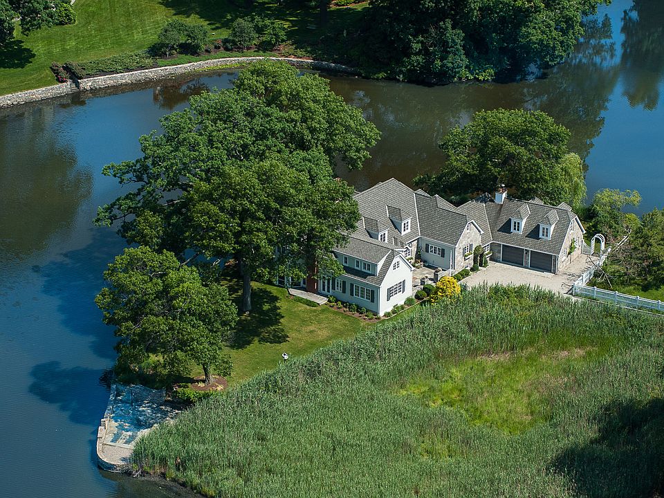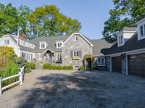 Situated in a unique and serene setting, this Connecticut stone and shingle home was artfully designed with superb views of Darien's beautiful Gorham's Pond from every room. The double story foyer leads to the elegant living room, dining room and study. The gourmet kitchen opens to the spectacular great room with soaring stone fireplace. A delightful screened-in porch and many outdoor terraces are perfect for relaxing, entertaining and enjoying the views. Four ensuite bedrooms include the fabulous master suite with hexagonal sitting area looking towards the historic Rings End Bridge. There is a wine cellar and an area to launch a kayak. Only a few minutes to the town, train and beach yet feels a world away!