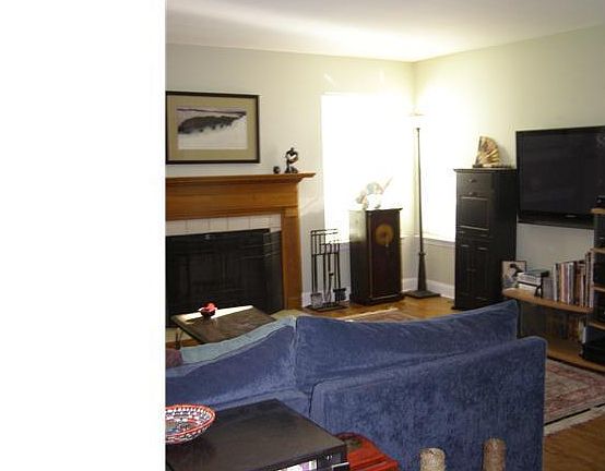 Sunny upgraded Stonerise Twin! Foyer w wrap-around staircase and landings and warm hickory hardwood floors. Ahead the dining room w walk-out bay window, then the living room with wood-burning fireplace, bisque tile surround and handsome wood mantle plus south-facing windows overlooking the greensward. Bright kitchen w Bosch dishwasher and microwave, artisan tile divider, oak cabinets, pantry, imported ceramic tile floor, and breakfast area with sliding doors to the patio. A powder room completes this floor. Upstairs, a relaxing master bedroom w vol ceil, Palladian window, walk-in closet and master bath w skylight, soaking tub + shower. In the hall, a built-in oak cabinet w counter, laundry, and full bath w tub/shower, and two additional, nicely-decorated bedrooms. Finished basement w fam rm/home office/TV room. NEW furnace, hot water heater and central AC in 2009. Walk to Lawrenceville village w pleasant parks, schools, restaurants, bakery, P.O., banks and bus to trains.