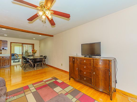 Located in North Colonie Schools, this home is nestled on .49 acres featuring 2192 sqft. Your open floor plan offers a large living room with hardwood floors, eat-in kitchen with dining area. Expansive family room with gas fireplace and lots of natural lighting. 3 spacious bedrooms with gas fireplace in primary bedroom. Hardwood under carpet. 2 Full baths. Additional finished area on the first floor with 3rd gas fireplace; perfect for home office, gym or storage. Updates include: Tankless HW (2023), Gutters (2022), Garage Door & Overhead Equip. (2019), Furnace (2017), AC (2017), Digital Thermostate (2017).