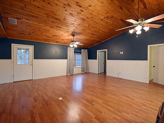 CREEK FRONT CABIN WITH NO RESTRICTIONS ON .89 ACRES. This cabin sits on a majestic setting and features an open floor plan, spacious kitchen with walk-in pantry and large living room for family gatherings. The 2 bedrooms are comfortable and there is also a den/office that can be used as additional sleeping quarters. Enjoy the view and sound of the creek from the covered rocking chair deck. Paved circular driveway that wraps around the cabin. Outbuilding for yard tools or workshop. Watch the colors of the season change from your own piece of heaven. COME TO THE MOUNTAINS AND ENJOY THE SIMPLE LIFE.