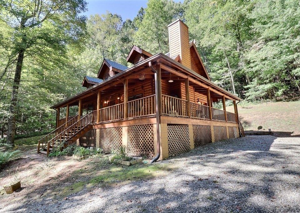 Great rental potential, permanent home, or great mountain escape! A true log cabin nestled in a secluded location on 1.4 acres of wooded land that backs up to USFS - seclusion at it?s finest! Large wrap around deck with room for seating & relaxing steals your attention. Welcoming open floor plan greets you from the front entrance. Wood burning stove placed within a brick mantel in the living room for a cozy setting, spacious kitchen with counter space & pantry, & dining area. Master on main with bay windows to complete the look. 2BRs on upper level with vaulted ceilings & exposed beams - great for hosting friends & family! Updates & improvements throughout such as new flooring & roof. Just 2 miles from the popular Helton Creek Falls & Vogel State Park for great outdoor adventures, plus located close to DT Blairsville for all of your wants & needs here in the mountains!