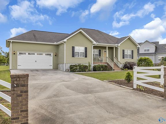 This is the perfect spot! Almost an acre in Willow Lake just minutes to downtown Guntersville or a quick drive to Huntsville. Boat launches near by. 3bedroom 2 bath has hardwood in the living, dining and hallways, tile in Kitchen and baths. 9' Celings. Kitchen has a pantry. Lots of closets in the home. Trex decking on front porch and back deck area. Back yard features raised garden area, storage building & fruit trees. This is the truly the white picket fenced home you've been looking for.
