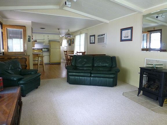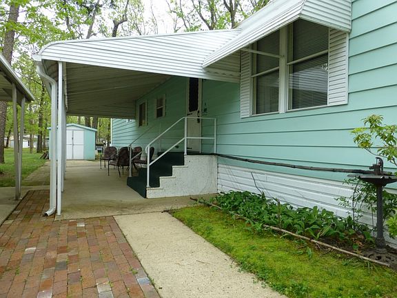 Welcome to Allenwood Estates, a 55+ Senior Community. This clean, move in ready home has newer flooring and has been freshly painted. The open floor plan and cathedral ceiling provides a comfortable living area, and large windows in the living room let in plenty of natural light. A newer propane gas stove creates a warm, relaxing atmosphere. The bright, spacious kitchen offers newer laminate floors, lots of cabinets and counter space, and all the appliances are included. The bedrooms both have double closets, and you~ll be pleasantly surprised at the size of the bathroom. There is a full sized washer and dryer. Awnings help keep this home cool in the summer and add to the charm. Outside there is a covered patio to enjoy with friends and neighbors. The carport is just a step away to help on rainy days. Extra storage is available with the included 12x8 shed. Pay NO taxes, water, or sewer bills with this great home at a great price!