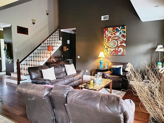 4 or 5 bedrooms, 3 full baths, in desirable Huntington Place Subdivision. First floor has a living room with vaulted ceilings, open kitchen with separate formal dining room, main level master bedroom and one additional bedroom. Second floor boasts two bedrooms, with an optional third for the larger family or a bonus room for one who desires a mancave or she-shed. The backyard is impressively spacious with a separate storage building. A great lot with an even greater home. All info subject to verification.