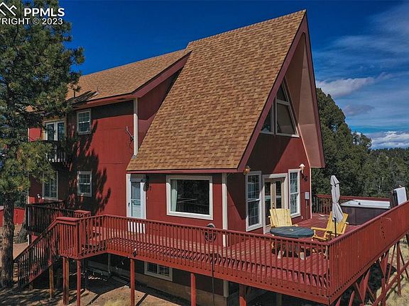 Looking for that mountain get-a-way or full-time residence? This one is for you! The main level has a beautiful kitchen with plenty of cupboard and counter space. Also encompassing the main level is 2 large bedrooms a full bath, laundry area and of course your dining and living room with wood fireplace. Walk out to your wrap around deck and enjoy the peace and serenity while taking in the westerly mountain views. The master/loft area also has a full bath along with its own private deck for watching the sunset and view of Pikes Peak. Full basement underneath [not accessible from house] could be income potential or add stairs for additional living space. The possibilities are endless. Some updates to the house include fresh paint, new flooring in the bedrooms and updated bathrooms. The workshop has framing for the detached garage [slab already poured] – Don’t miss out, this one is priced to sell quick.