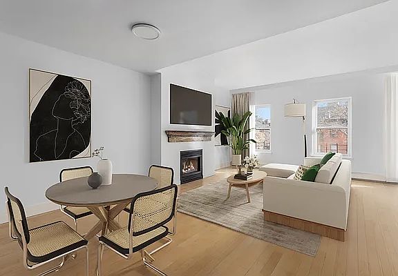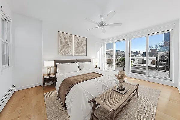 Unit 3 is a bright and sprawling 3BR/2BA condo duplex perched atop a beautiful pre-war building in central Fort Greene. Upon entrance, a skylight illuminates the open kitchen that features an abundance of storage and countertop space. The southern-facing living and dining area is centered around a cozy gas fireplace. Perfect for entertaining and relaxing, the space can also easily accommodate a work-from-home setup. The queen-sized bedrooms at the rear of this level are north-facing, quiet, and enjoy views of the trees from the nearby park. Up one floor, the primary suite encompasses the entire level and enjoys floor-to-ceiling windows, a walk-in closet, en-suite bathroom with Grohe rain shower, and, best of all, a private southern-facing terrace. 87 Lafayette Avenue is a handsome brick building that was erected in 1901 and converted to a boutique condominium in the '00's. The building is comprised of just three residential units and, albeit low common charges, is under the care of a management company. Pets and rentals are permitted, making for a wise investment opportunity. This building is ideal for the buyer seeking an authentic connection to Fort Greene. Reside within blocks of Brooklyn Academy of Music (BAM), Barclays Center, and top-tier dining options including Olea, Elsewhere, Aita, Saraghina Caffe, and Walter's. 87 Lafayette Avenue is positioned to provide an extraordinary quality of life in a neighborhood that is endowed with some of the finest architectural and cultural heritage in NYC. For shopping, Whole Foods and Trader Joe's are nearby, along with a spectacular farmers' greenmarket that is open year-round in nearby Fort Greene Park. The G train at Fulton Street is located across the street, and the C train at Lafayette Avenue is only one block to the south. Atlantic Terminal is 5 minutes away and provides access to the 2/3, 4/5, B/Q, N/R, and D trains, as well as the LIRR.
